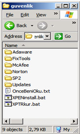 - Updates (The directory containing the Windows XP operating system updates)